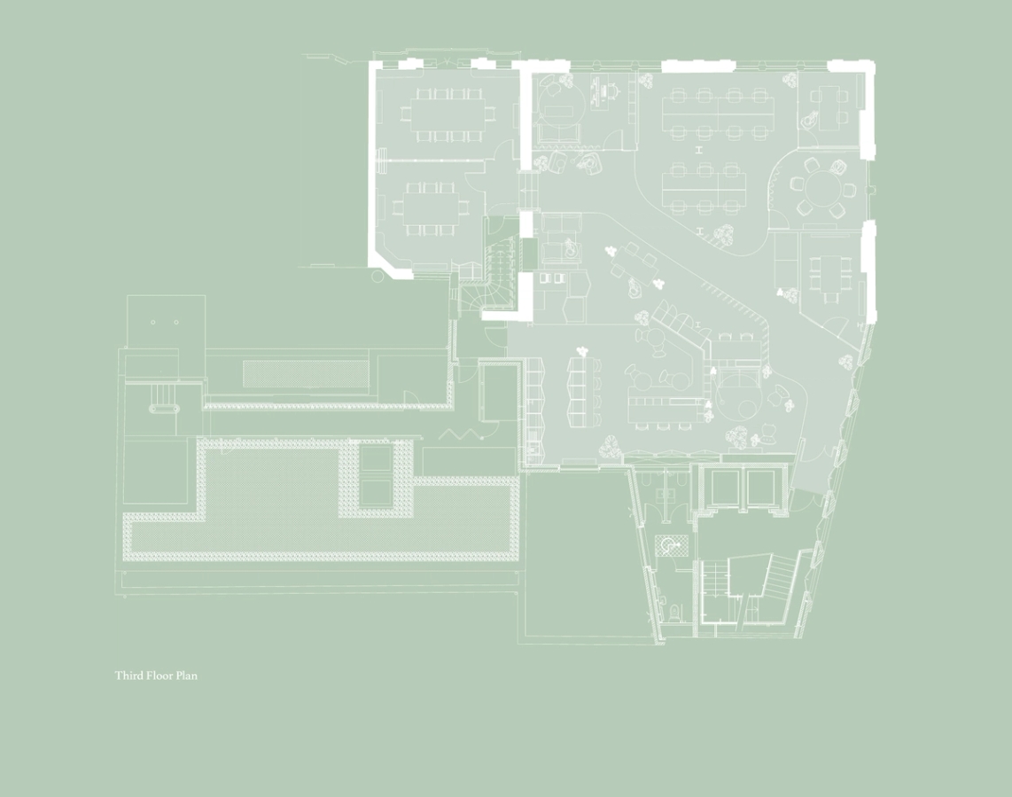 One of the ambitions of the project was to create a warm and enjoyable environment for working, which is why there is a large ratio of breakout space to desking. To maximise flexibility, however, the breakout space has been designed to accommodate optional working spaces as well. This ambition pushed a large use of timber finishes to add a natural warmth to the space and together with a number of bespoke designed joinery items this adds a unique character to the space.