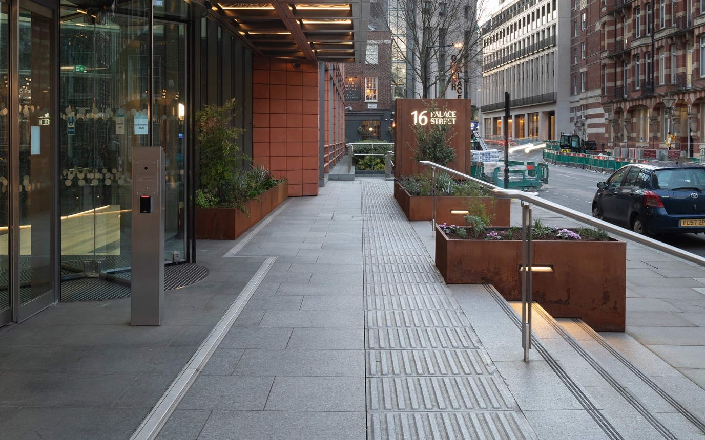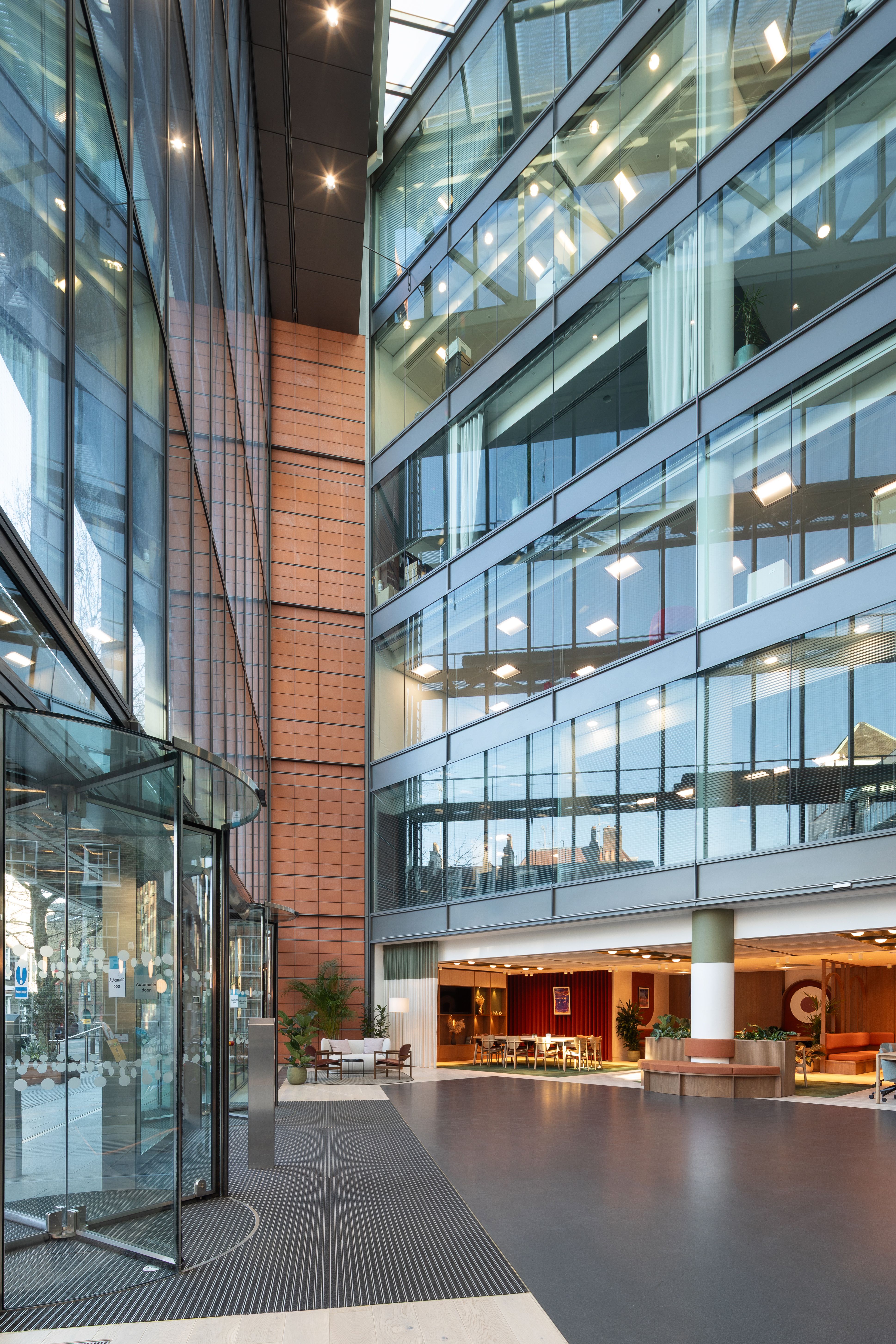 Additionally, the entrance has been redesigned with an illuminated canopy and planting in Corten steel planters, promoting additional biodiversity connected to the wider estate and improving the approach to the building.
