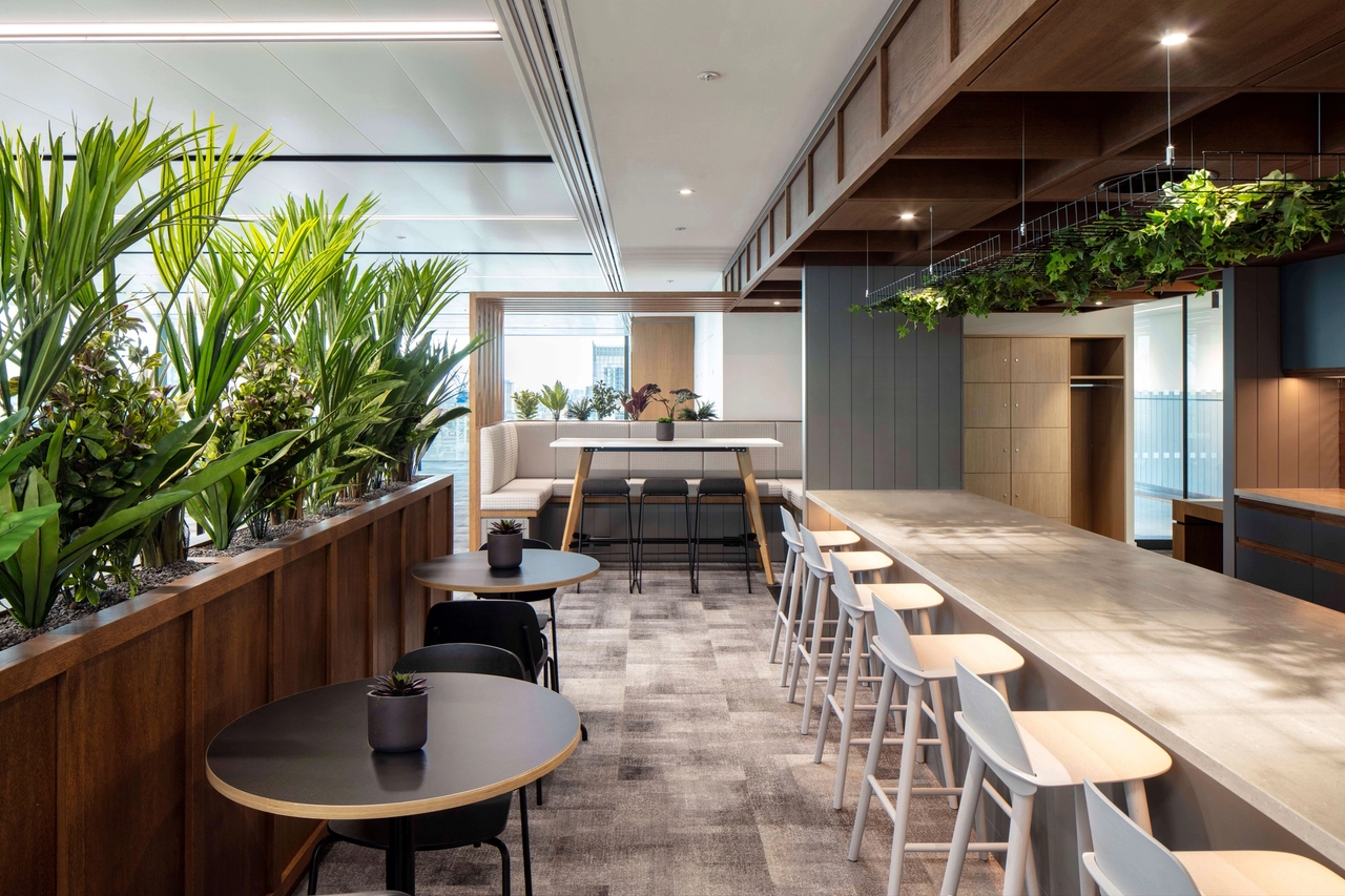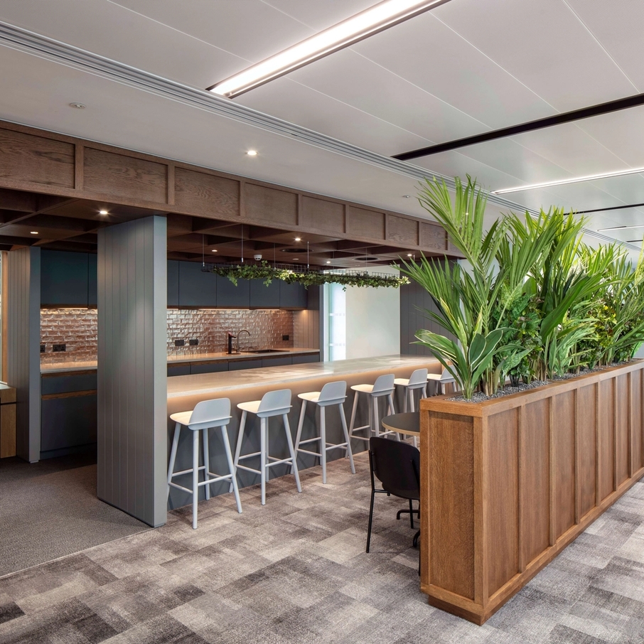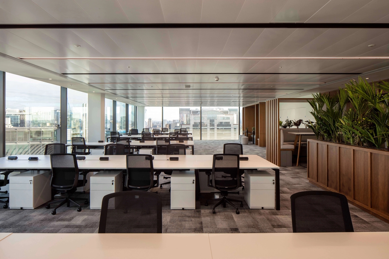 One of the main priorities for the CAT A+ layout was to remove the existing partition barriers that blocked cross-office views out the windows. The layout was designed to create vistas for different areas of the office to capitalise on the London views. Bespoke joinery helps gently divide spaces and provides a unique finish to the space and a sense of quality for the office.