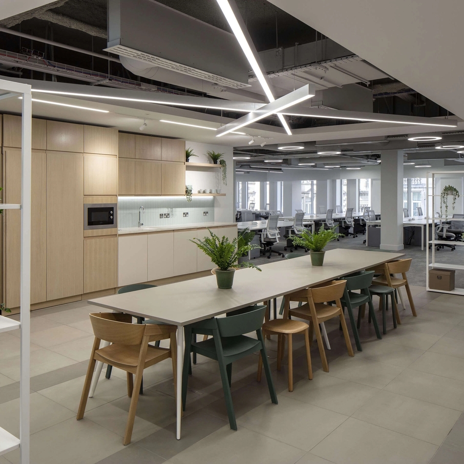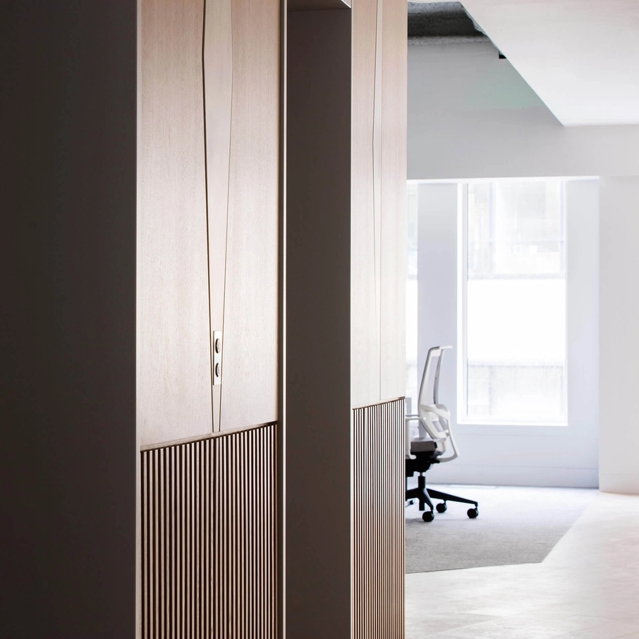 A fit-out project spanning 4 floors at 85 London Wall with a mixture of CAT A and CAT A+ aimed at refreshing the existing space into a bright, modern office space. The fit-out involved redecorating the lift fronts into the office space which allowed for material continuity throughout the joinery items in the space. Light oak tones are featured throughout to add warmth and a timeless look. The reception area aims to feel open and welcoming leading onto a client meeting room zone to maximise spatial efficiency for tenants.