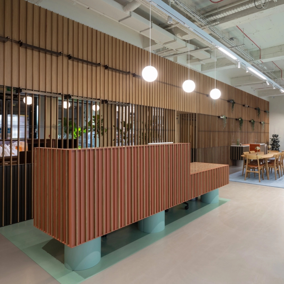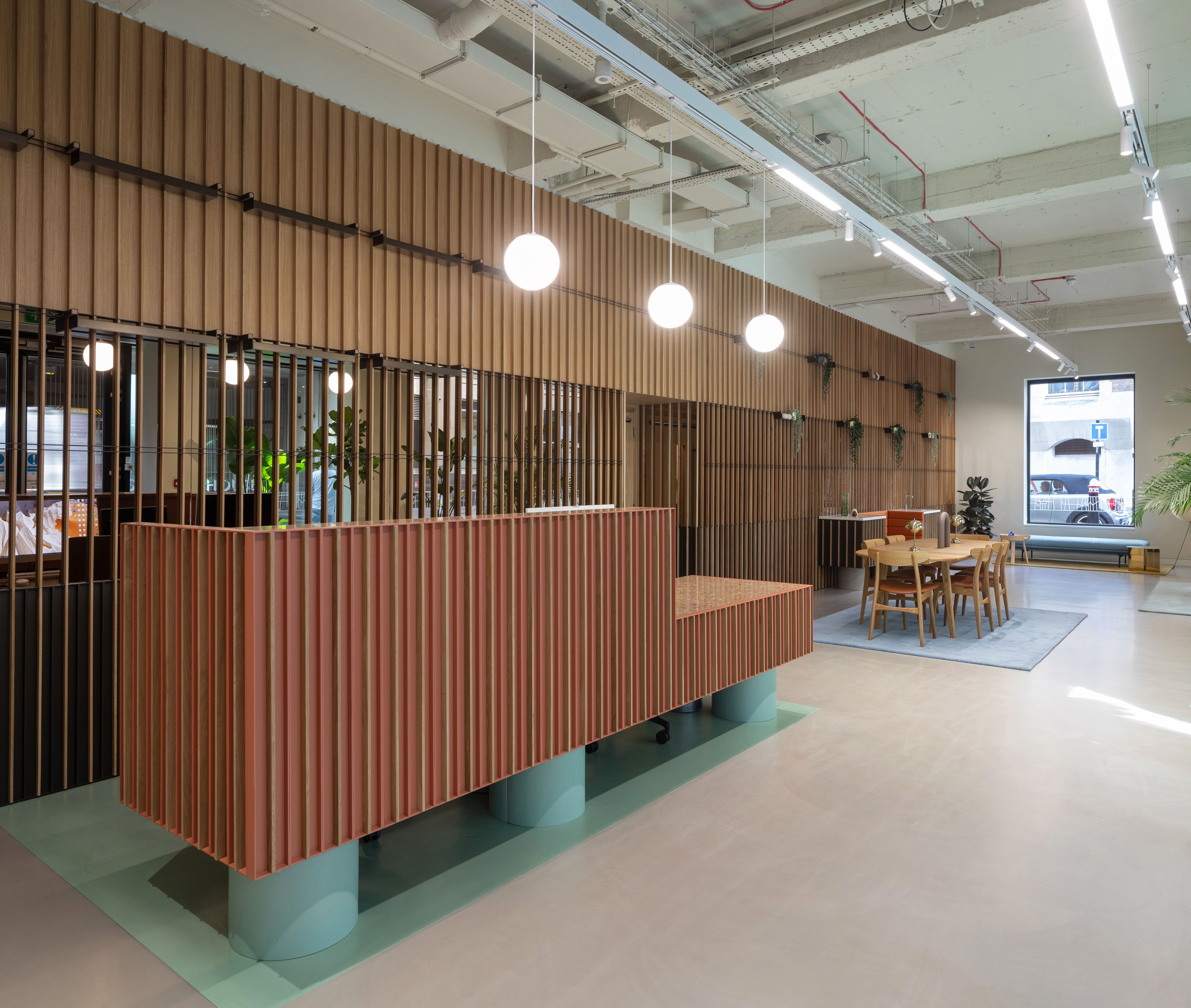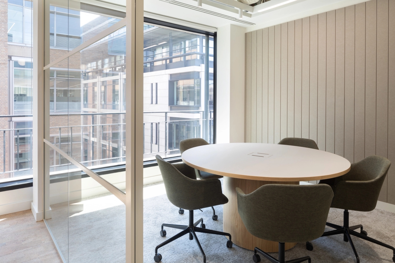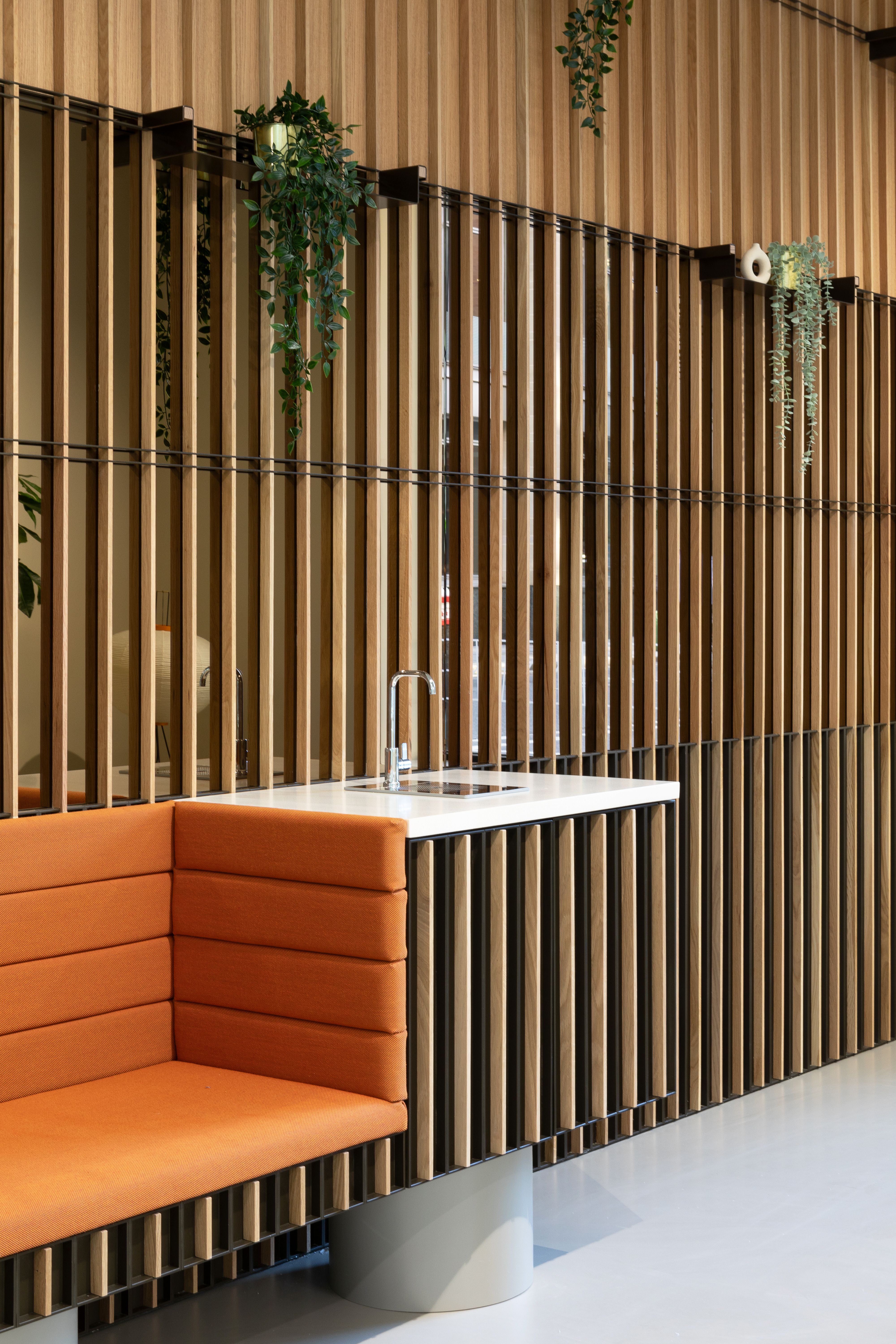 Materiality choices were also key, making use of cork flooring, recycled kitchen worktops and high quality timber furniture with less adhesives - designing for longevity. The use of natural materials throughout the scheme also provides a lovely warmth to the space and reduces VOCs making for a healthier work environment.