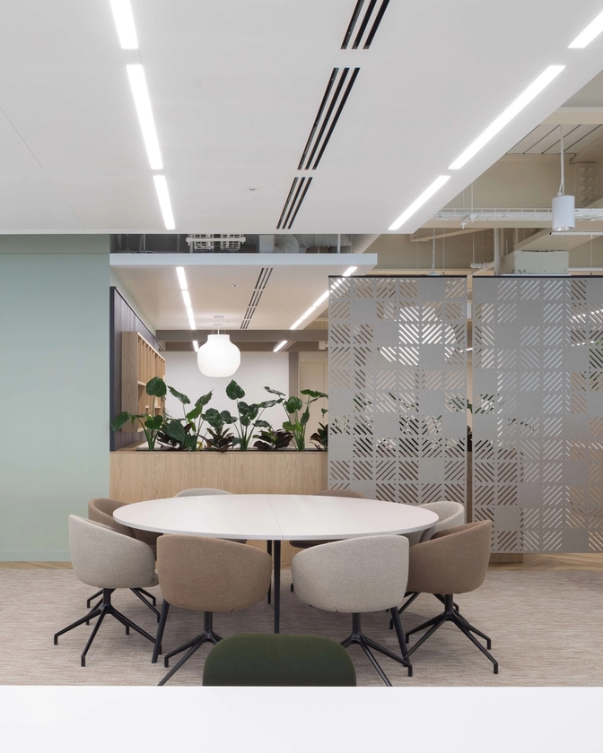 Ceiling raft systems were designed to maximise flexibility into the future and minimise any future waste should tenants and layouts change.