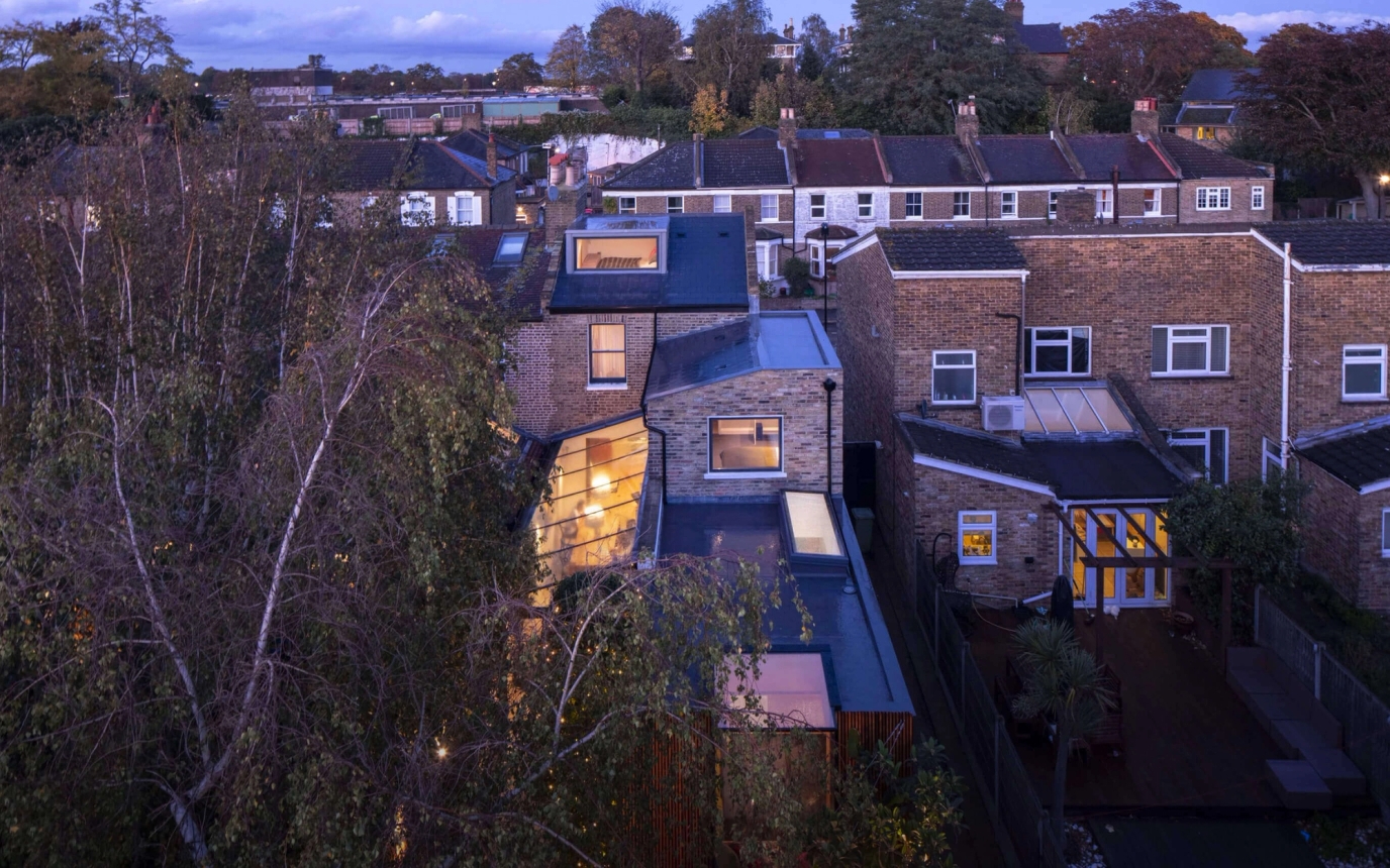 The homeowners have lived in the same small house for 16 years, but desperately needed more space for their two teenagers and new addition, Luna, the dog. Having looked further afield, nothing caught their eye and they decided they couldn’t beat the location of their end of terrace house in Blackheath. So, the brief was to reimagine the existing house by maximising every opportunity to gain as much space as possible. Being in a conservation area, the proposals needed to be sensitive, but inventive. An accumulation of interventions to the sides of the house, the loft, and the garden were the unconventional yet dynamic end result of a restrictive and challenging brief.