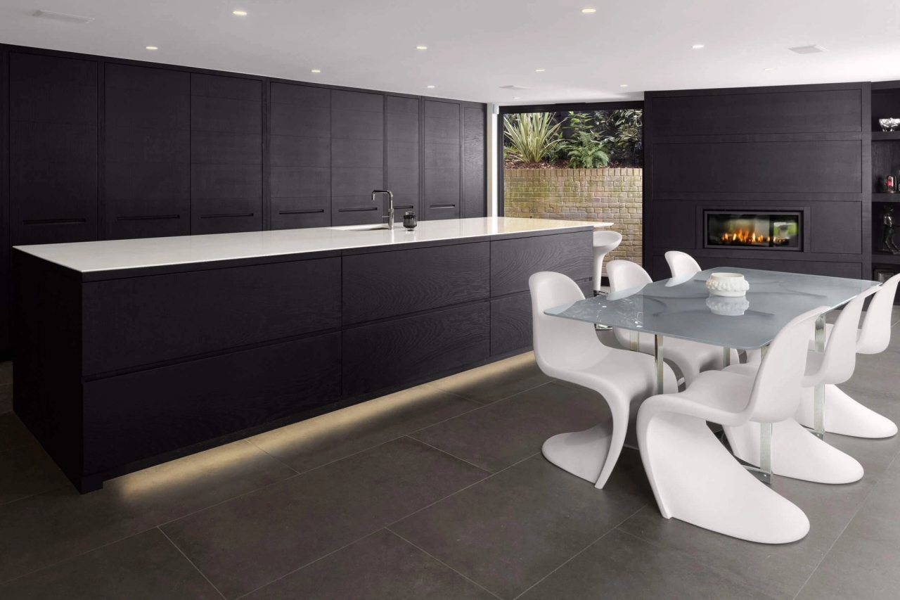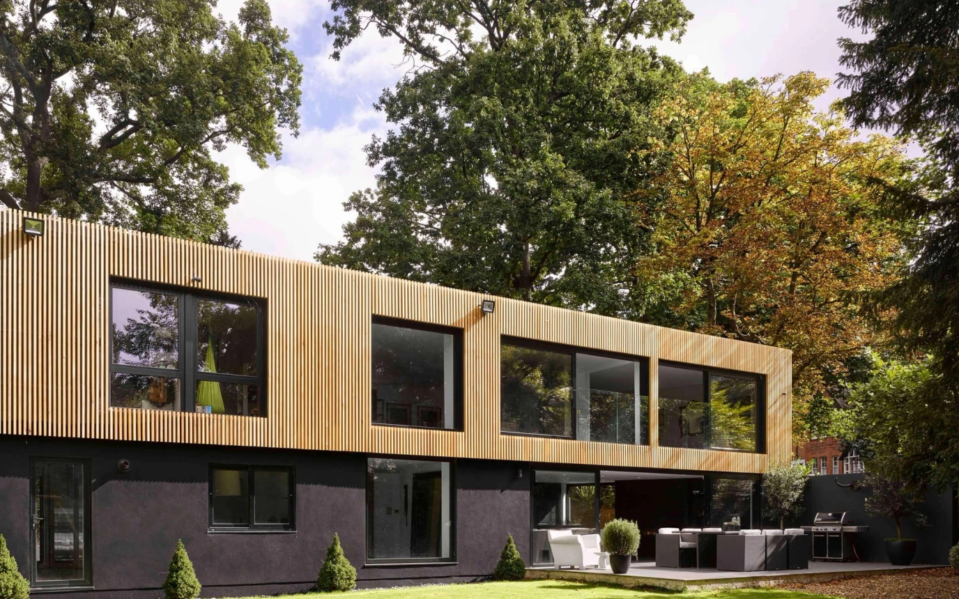 The detached five-bedroom house was built in 1982 and designed by Geoffrey Carter and Chu. When the client purchased the property in 2015 the house was tired and we were appointed to envisage and deliver a complete refurbishment. The brief was to create a five-bedroom house with a games room and an open-plan kitchen and dining area. Our strategy was to use the existing garage and under-utilised area of the site, into which the property was extended. Extending and converting various elements of the house required a strategy to tie the old and new together, which was achieved by re-cladding the entire house.